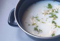 250/100/3 г • Ароматный густой суп с кусочками филе цыпленка,заправленный яйцом и свежей зелени