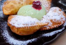 130/50/5/2 г • Маленькие хрустящие румяные чебуреки с начинкой из сладких вишен. Подаются с шариком ванильного пломбира