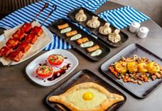 1500 г • Джарский хачапури с начинкой из двух сыров и яйцом • Кукуруза на подушке из морепродуктов • Шашлык «Батумский городской» – себеп кабаби из курицы укутанное в мясо свинины • Хинкали с картошкой и грибами с добавлением эстрагона • Пахлава • упаковка сета оплачивается отдельно